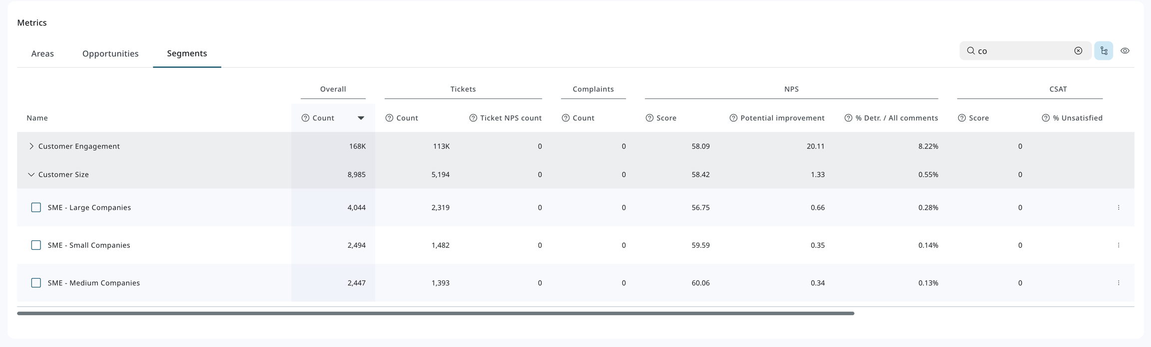 Measure impact by group: Determine the impact of issues or opportunities on specific customer segments.